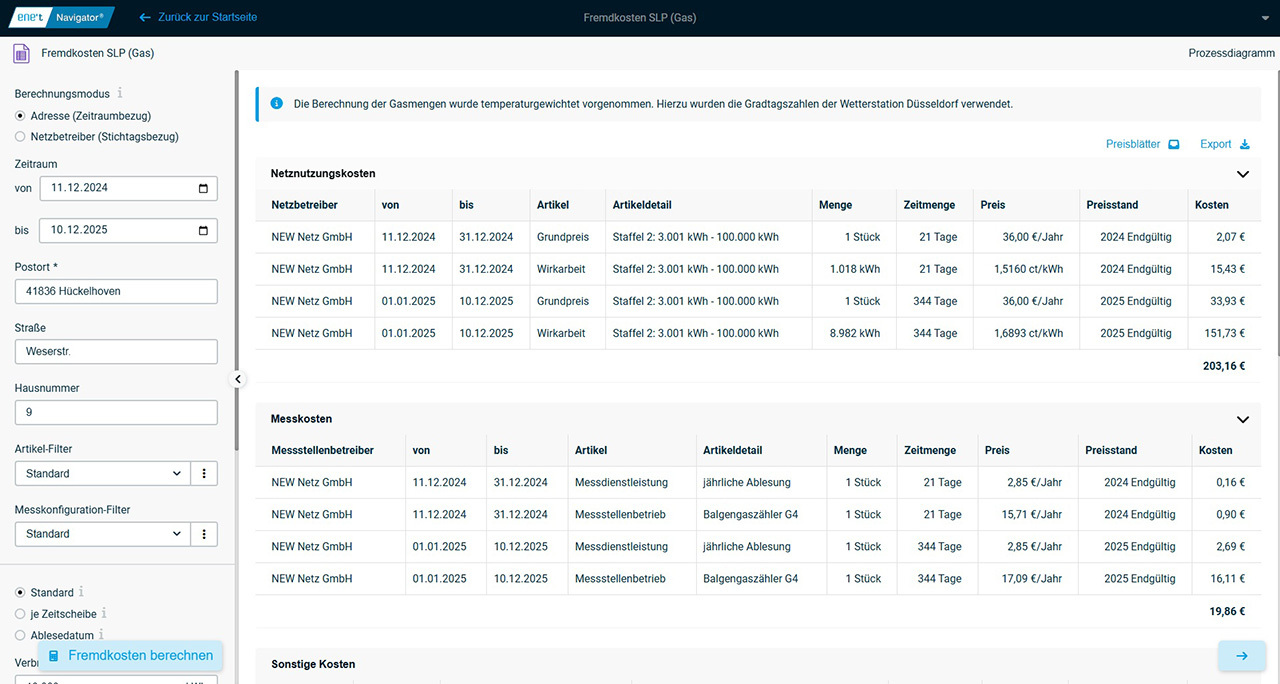 Durch den Einsatz der App Fremdkosten SLP (Gas) erhalten Sie die benötigten Informationen centgenau, um diese entweder direkt zu nutzen oder für weitere Prozessschritte zu verwenden.