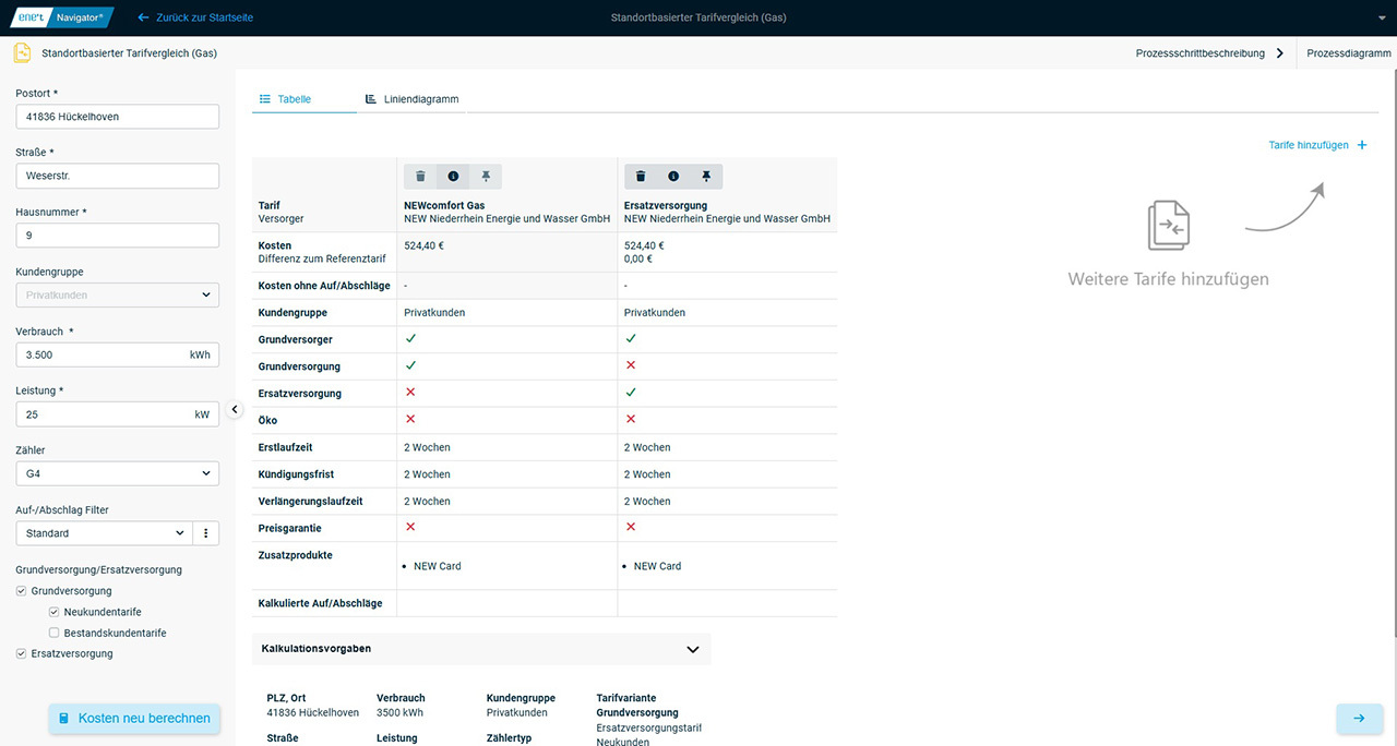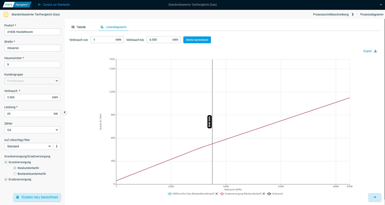 Standortbasierter Tarifvergleich (Gas)